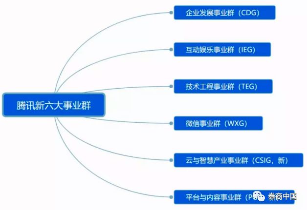 腾讯此次组织架构优化调整,既保持深耕垂直领域的优势和特点,保留原有的企业发展事业群(CDG)、互动娱乐事业群(IEG)、技术工程事业群(TEG)、微信事业群(WXG);又突出聚焦融合效应,新成立云与智慧产业事业群(CSIG)、平台与内容事业群(PCG)。